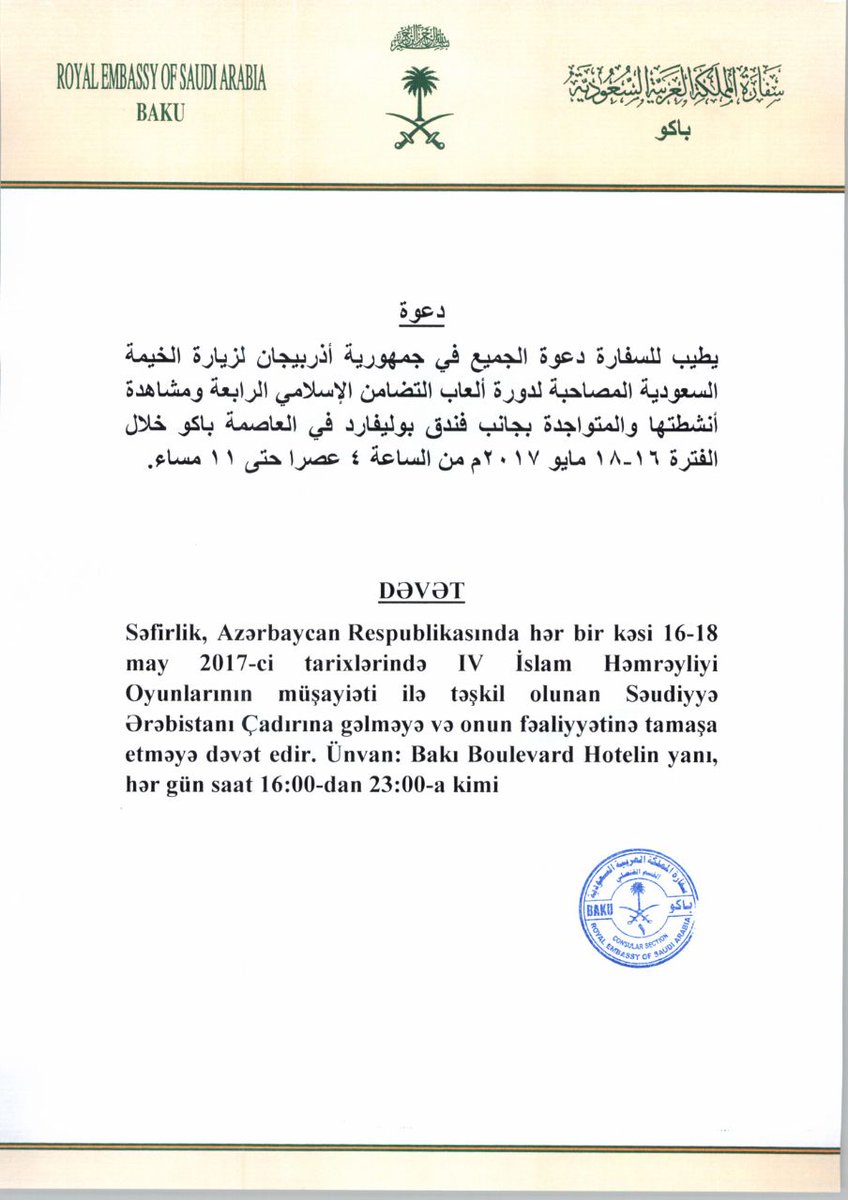 السفارة في أذربيجان On Twitter عزيزي المواطن السفير يسر السفارة دعوة الجميع لزيارة الخيمة السعودية المصاحبة لدورة ألعاب التضامن الإسلامي باكو 2017 Https T Co Vinadozcpd